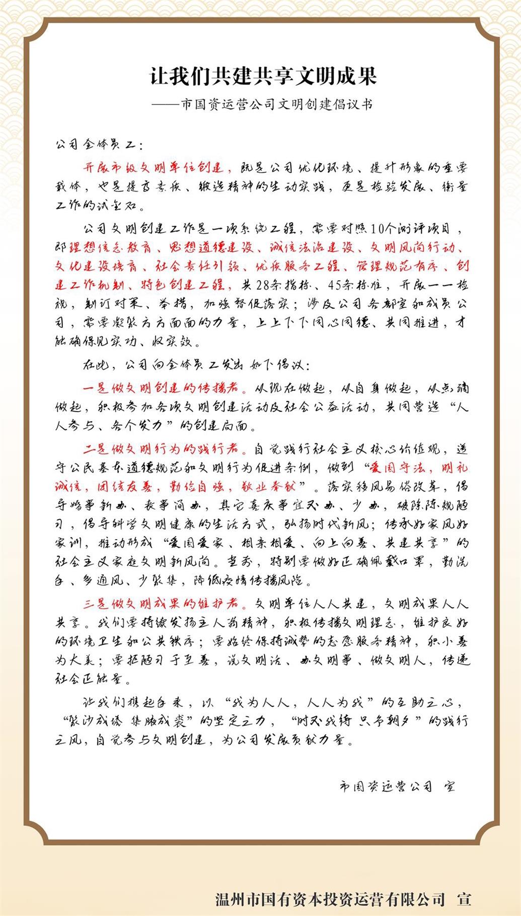 ? ? ? 8月13日上午,市國資運(yùn)營公司黨委委員、副總經(jīng)理李耕,率風(fēng)控法務(wù)部、紀(jì)檢監(jiān)察室和財(cái)務(wù)管理部等一行7人,到溫州開發(fā)投資有限公司開展“解難題”調(diào)研,重點(diǎn)是對開發(fā)投資現(xiàn)階段開展的“理舊賬”和審計(jì)整改工作進(jìn)行指導(dǎo)部署。