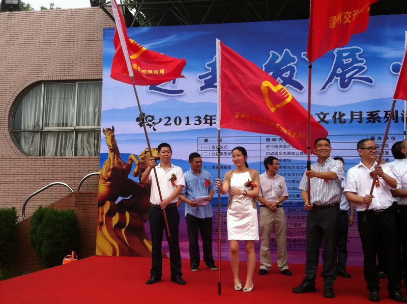 ??? ?????? 9月22日上午,集團(tuán)志愿服務(wù)總隊(duì)15名志愿者代表參加由市國(guó)資委舉辦的2013年全市國(guó)資國(guó)企文化月系列活動(dòng)暨志愿服務(wù)總隊(duì)啟動(dòng)儀式,集團(tuán)副總經(jīng)理劉聯(lián)松同志從市國(guó)資委領(lǐng)導(dǎo)手中接過(guò)了市志愿服務(wù)總隊(duì)的旗幟。