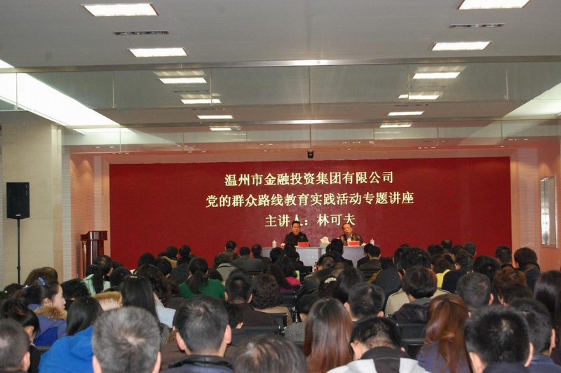 ? ? ? ? ? ? ? ? 3月21日上午,集團(tuán)在金改廣場(chǎng)二樓舉辦黨的群眾路線教育實(shí)踐活動(dòng)專題講座,特邀正泰集團(tuán)黨委書記、副總裁,溫州市新經(jīng)濟(jì)組織和新社會(huì)組織黨務(wù)工作者協(xié)會(huì)會(huì)長(zhǎng)林可夫主講,講授學(xué)習(xí)實(shí)踐黨的群眾路線的探索與思考。集團(tuán)本級(jí)和全資公司全體職工,控股公司班子成員及參股公司主要負(fù)責(zé)人共150余人參加。集團(tuán)黨委副書記、總經(jīng)理岑利主持會(huì)議。