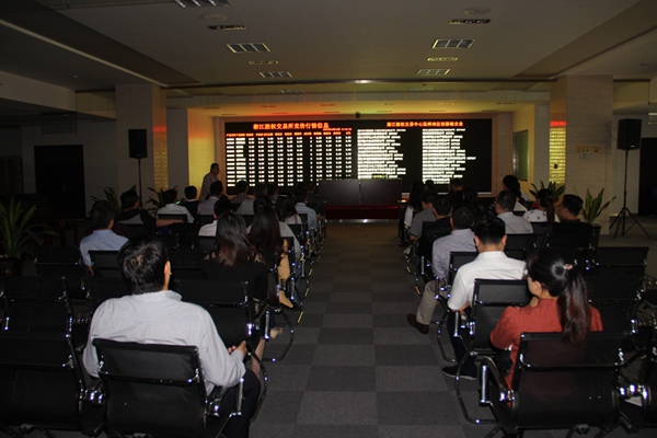 考察人員首先聽取廣場工作人員對一樓入駐單位的基本情況介紹,對相關(guān)的業(yè)務(wù)內(nèi)容進(jìn)行了詳細(xì)了解,并對溫州市股權(quán)營運(yùn)中心、溫州產(chǎn)權(quán)交易市場有限公司、溫州市金投融資擔(dān)保有限公司等單位的業(yè)務(wù)開展進(jìn)行了積極交流探討。隨后,在廣場二樓大廳,考察團(tuán)一行仔細(xì)參觀了溫州農(nóng)村產(chǎn)權(quán)交易公司及溫州市股權(quán)營運(yùn)中心股權(quán)交易大廳,并相應(yīng)了解了上述公司的業(yè)務(wù)開展情況。
