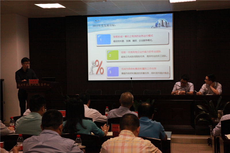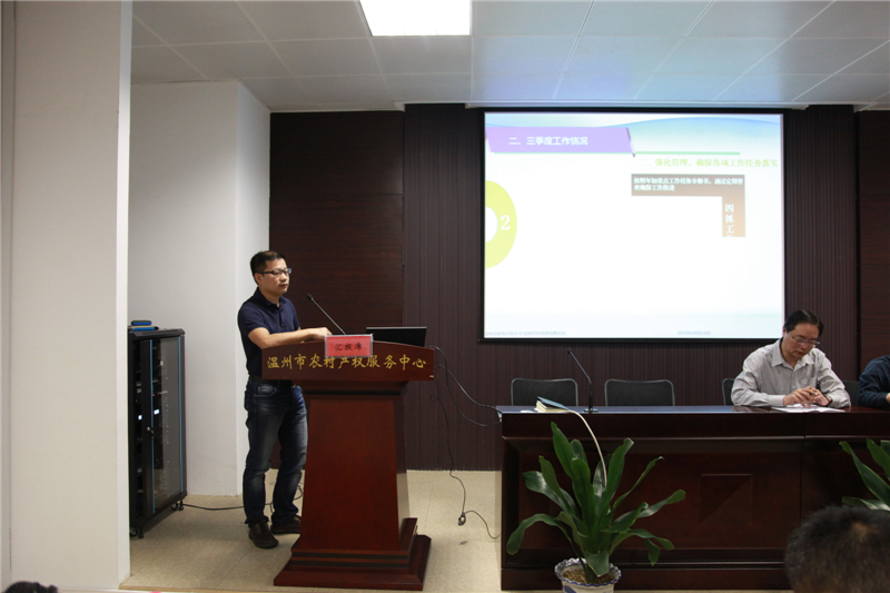 溫州市農(nóng)村產(chǎn)權(quán)服務(wù)有限公司副總經(jīng)理羅朝輝匯報工作