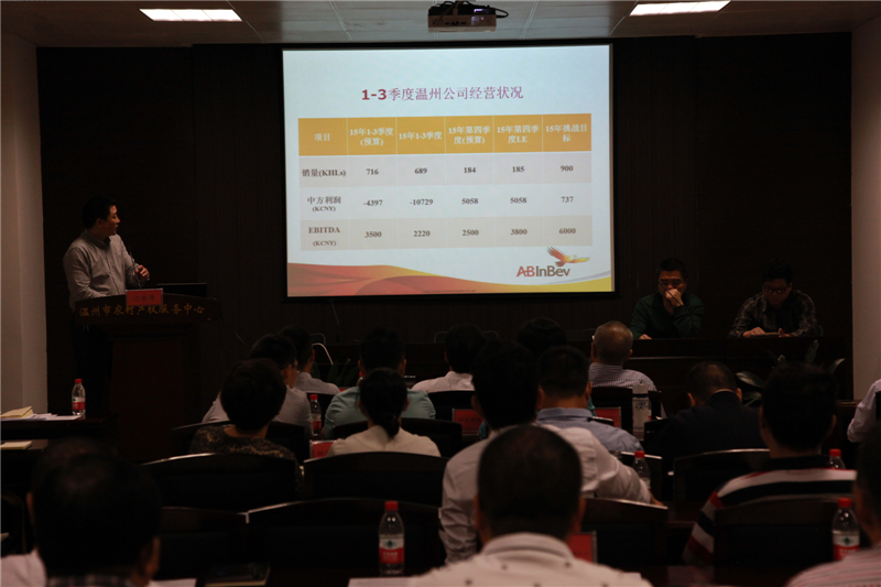 ??????? 在集團(tuán)全資、控股企業(yè)匯報后,參股的浙江金海蘊(yùn)生物有限公司、英博雙鹿啤酒集團(tuán)、溫州市農(nóng)村產(chǎn)權(quán)服務(wù)有限公司、溫州金融資產(chǎn)交易中心有限公司等成員公司就業(yè)務(wù)開展方面進(jìn)行了匯報。其中,溫州市農(nóng)村產(chǎn)權(quán)服務(wù)中心已完成農(nóng)村產(chǎn)權(quán)交易733宗,交易總金額達(dá)5.97億元,交易服務(wù)項(xiàng)目和數(shù)量比去年都有大幅增加,較去年同期增長百分之七十以上。