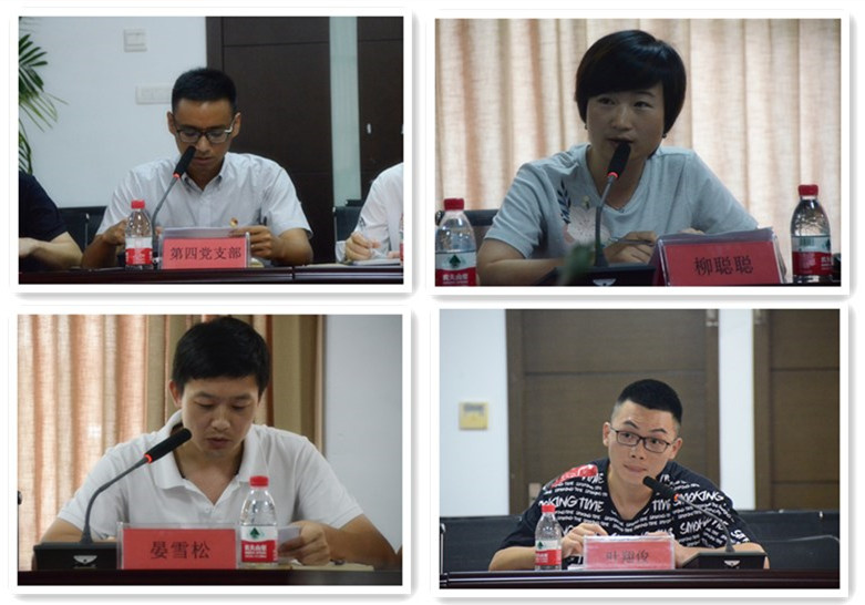 會(huì)上,集團(tuán)第四黨支部葉方杰同志,優(yōu)秀黨員柳聰聰同志、優(yōu)秀黨務(wù)工作者晏雪松同志、預(yù)備黨員葉翔俊同志先后作發(fā)言。他們從如何打造“四強(qiáng)四優(yōu)”黨建示范點(diǎn),如何發(fā)揮黨員先鋒模范作用,如何做好基層黨務(wù)工作,如何在思想上、行動(dòng)上入黨等方面講述作為共產(chǎn)黨員在平凡崗位上,爭(zhēng)做時(shí)代先鋒的故事。