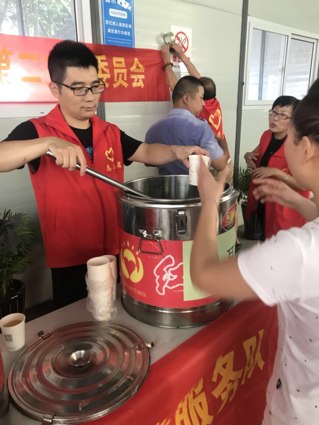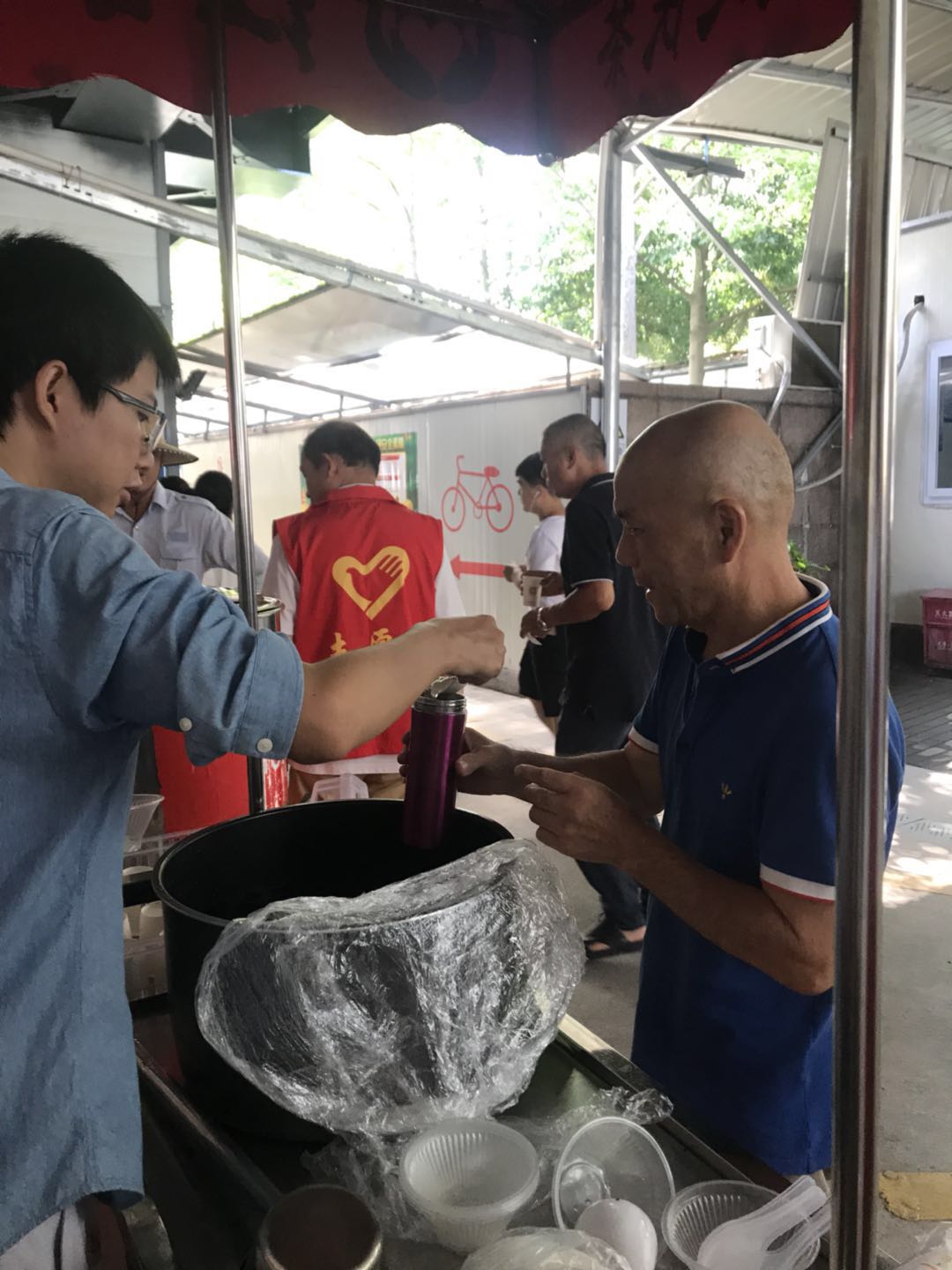 8月22日一早,第一支部黨員和第二支部黨員分別行動,第一支部黨員前往紅日亭提取伏茶和銀耳湯等物資,第二支部黨員負責(zé)運送涼粉、杯子等。