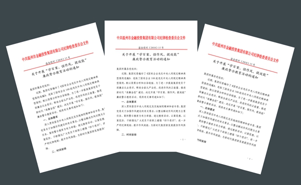 為深入學(xué)習(xí)貫徹中央八項(xiàng)規(guī)定及實(shí)施細(xì)則精神和新修訂的《中國共產(chǎn)黨紀(jì)律處分條例》,發(fā)揮查辦案件的警示、教育和震懾功能,挺紀(jì)在前,以案明紀(jì),進(jìn)一步提升集團(tuán)黨員干部廉潔從業(yè)意識,最近,溫州市金投集團(tuán)編印了《國有企業(yè)違反中央八項(xiàng)規(guī)定精神典型案例選編》一書,并做到全集團(tuán)人手一冊。