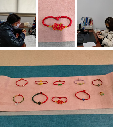 下午3:30分,活動(dòng)準(zhǔn)時(shí)開播,陳曉紅通過(guò)手機(jī)邊制作邊講解,如何繞繩、串珠、打結(jié)、收尾……,女職工通過(guò)手機(jī)屏幕認(rèn)真學(xué)習(xí),不懂的地方,虛心請(qǐng)教,對(duì)大家的問(wèn)題,陳曉紅都耐心的予以解答。經(jīng)過(guò)1個(gè)多小時(shí)的學(xué)習(xí)、編織,望著自己成功編織的祝福手繩,大家綻放出喜悅的笑臉。