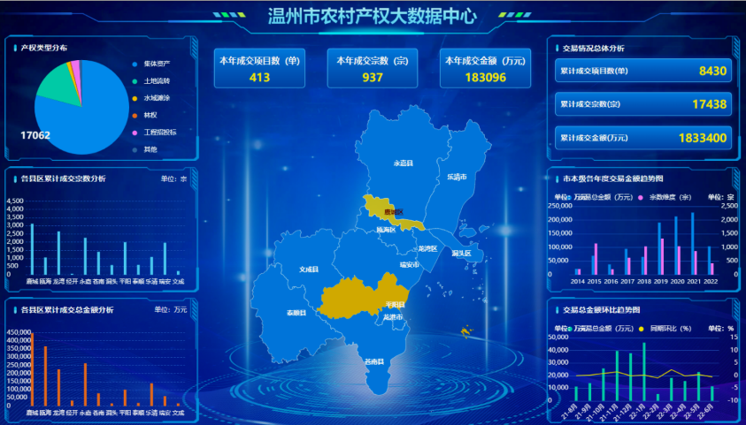 2022年,中心產(chǎn)權交易金額再創(chuàng)新高,實現(xiàn)穩(wěn)步向好發(fā)展。完成國有產(chǎn)權交易318宗,交易總金額13.07億元,平均增值率8.2%,有效實現(xiàn)了國有資產(chǎn)保值增值;完成市級農(nóng)村產(chǎn)權交易988宗,交易總金額20.21億元,交易愈發(fā)活躍;走訪對接企業(yè)、機構461次,深度培育企業(yè)30家,成功撮合間接融資3500萬元,助推溫州多層次資本市場高質量發(fā)展。