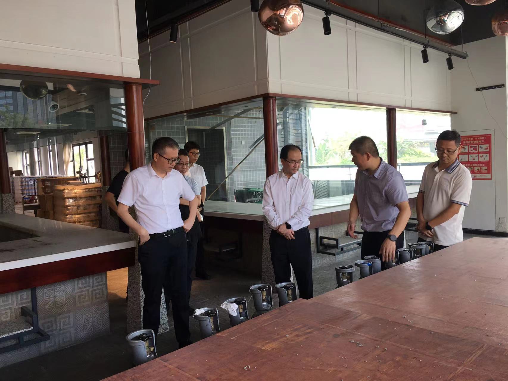葉剛一行對公司重點租賃物業(yè)金融大廈,以及濱江大排檔啤酒工坊,開展安全生產檢查。重點檢查地下室非機動車庫電動自行車停放充電規(guī)范管理執(zhí)行情況,招商重點單位消防安全責任制落實情況,以及啤酒工坊生產線衛(wèi)生安全管理等情況,叮囑進一步加強安全防范工作。
