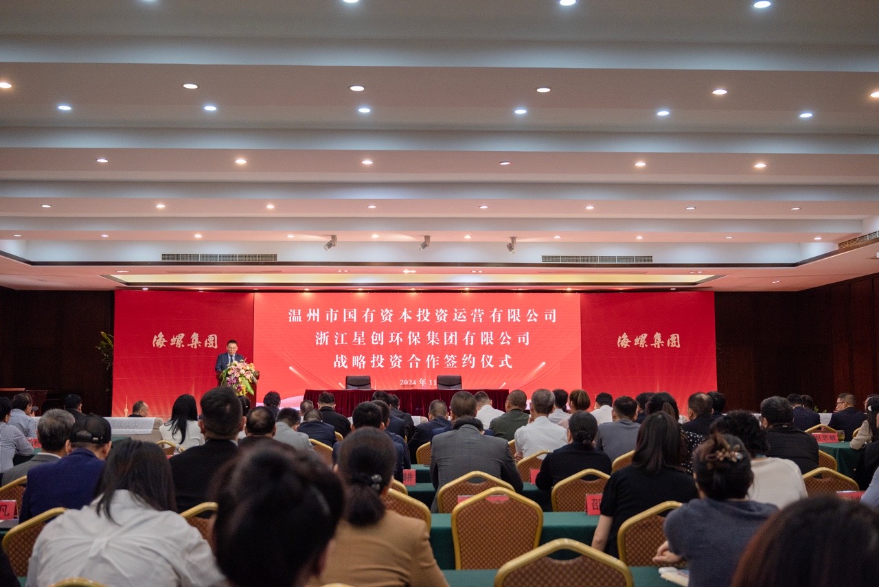 11月13日上午,溫州市國有資本投資運營有限公司和星創(chuàng)環(huán)保集團有限公司戰(zhàn)略合作簽約儀式隆重舉行。溫州市、區(qū)兩級相關領導,公司黨委書記、董事長趙東佐,黨委副書記、總經(jīng)理葉剛,黨委委員、副總經(jīng)理柯園園,以及行業(yè)專家、金融機構、溫州海螺集團(浙江星創(chuàng)環(huán)保集團)代表等160多人參加儀式。